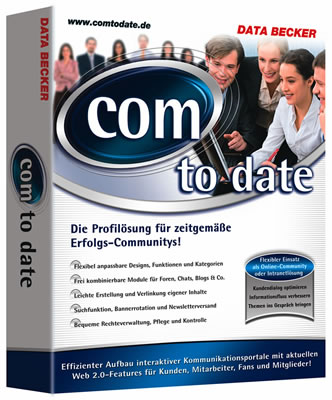 Auch das beliebte Community System erhalten Sie in zwei verschiedenen Varianten: Com to Date Pro - die Premiumversion mit Abrechnungsmodul für den professionellen Aufbau einer Community oder Com to Date für Privatanwender, Firmen und Vereine, die keine Abrechnungsfunktionen für ihre Community benötigen.